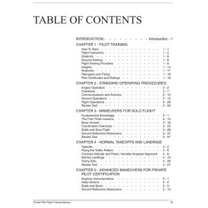 Chapter 1, Pilot Training. How to find a good instructor; elements to consider if you contemplate an aviation career; FAA pilot certificates and ratings; and elements that identify good instructors, flight schools, and students.